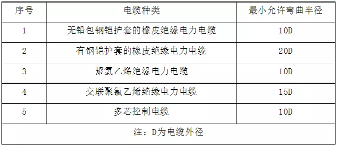 電纜彎曲半徑的規(guī)定及電纜最小彎曲半徑